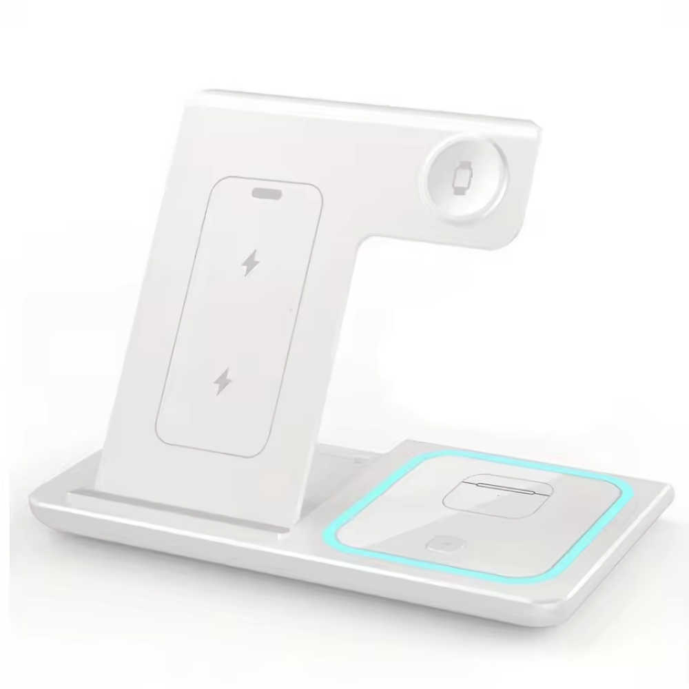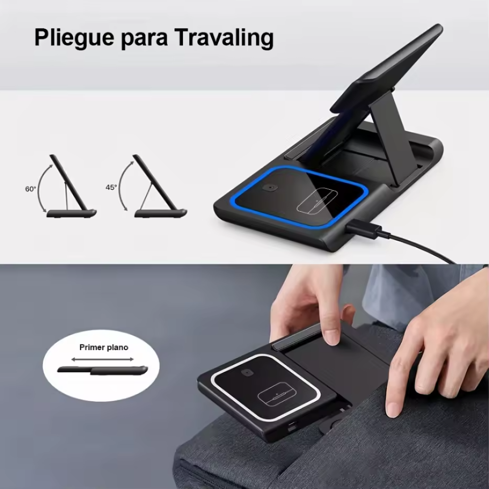 حامل شاحن لاسلكي بإضاءة ليلية 100 وات 3 في 1 لهاتف iPhone 16 15 14 13 12 Apple Watch Airpods Pro محطة شحن سريعة قابلة للطي